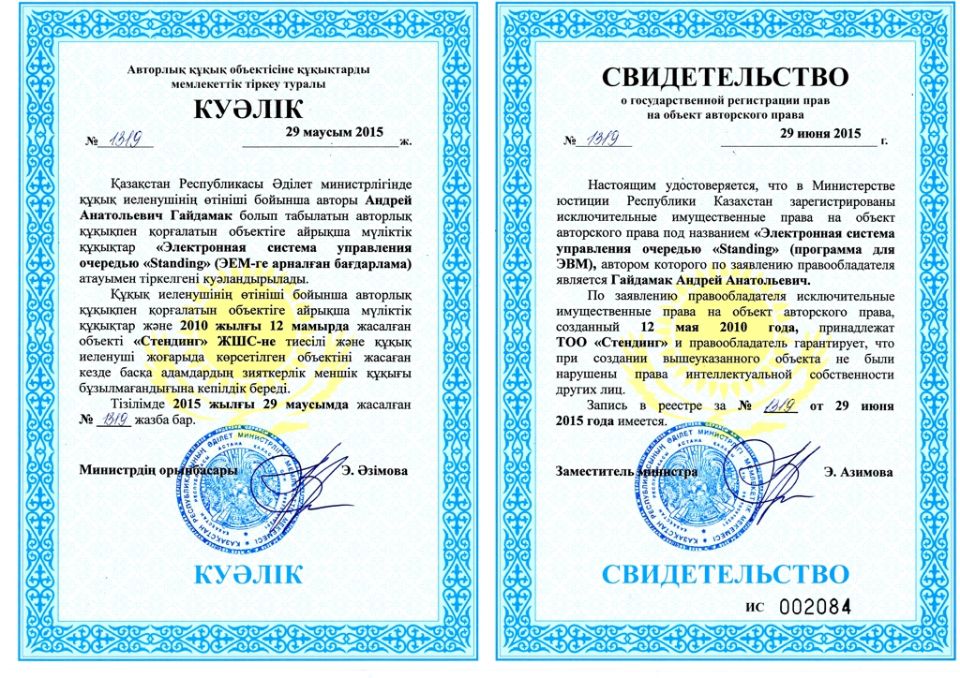 Авторские права и сертификаты